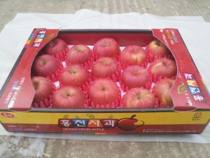 수하리 마을에서 생산한 부사로, 한상자에 (15과)4만원 이며,